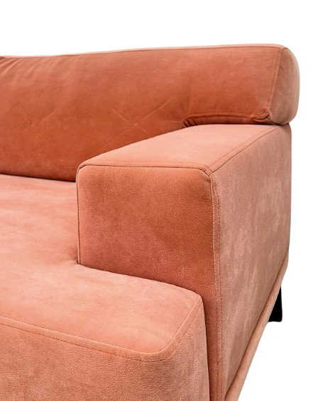 הספה מרופדת בבד דוחה נוזלים ומתנקה בקלות בגוון ורוד