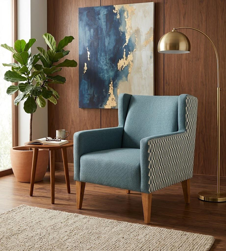מרופדת בבד משולב חלק וגיאומטרי.