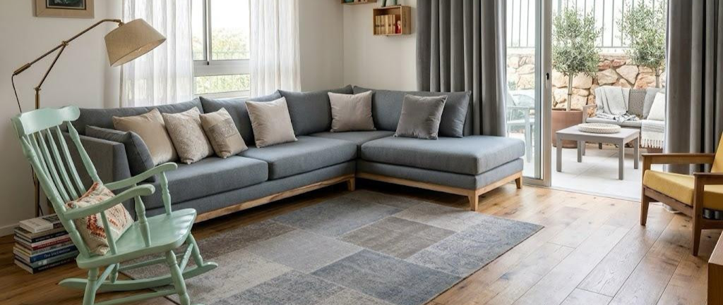 ספת פינתית מדהימה, בסיס הספה עשוי מעץ אלון מלא בעיצוב כפרי מדהים.