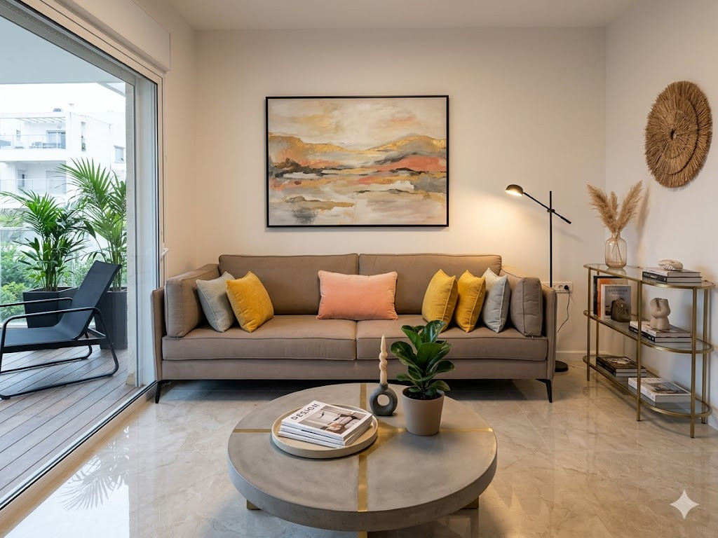 הספה בעלת קווים נקיים, נוחה מאוד ומתאימה לחללים גדולים.